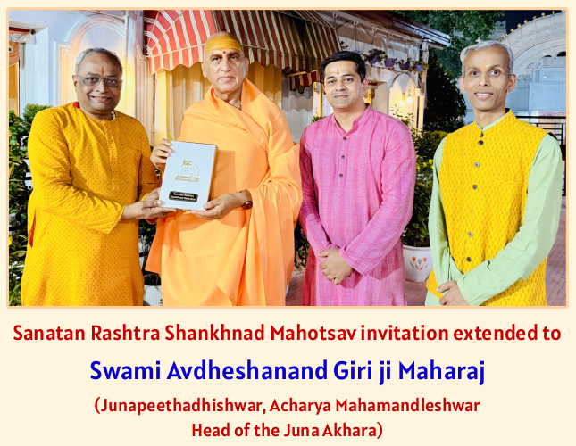In our scriptures, 'Shankhnad' (blowing of the conch) symbolizes valor and auspicious beginnings. Hence, blowing the conch of Sanatan Rashtra Shankhnad Mahotsav signifies that the mission behind it will be an essential stepping stone towards societal unity and harmony. It will be like a trumpet call that will resonate in schools, it heralds unity amongst Hindu sects, cultural revival, and the protection of Sanatan Dharma for future generations.