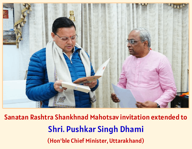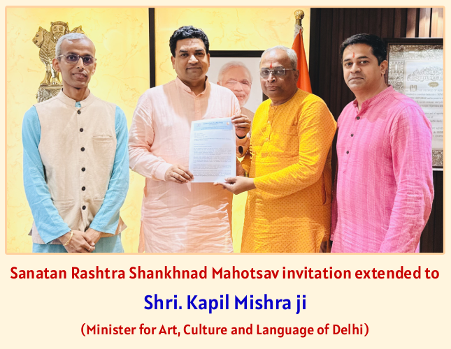 In our scriptures, 'Shankhnad' (blowing of the conch) symbolizes valor and auspicious beginnings. Hence, blowing the conch of Sanatan Rashtra Shankhnad Mahotsav signifies that the mission behind it will be an essential stepping stone towards societal unity and harmony. It will be like a trumpet call that will resonate in schools, it heralds unity amongst Hindu sects, cultural revival, and the protection of Sanatan Dharma for future generations.